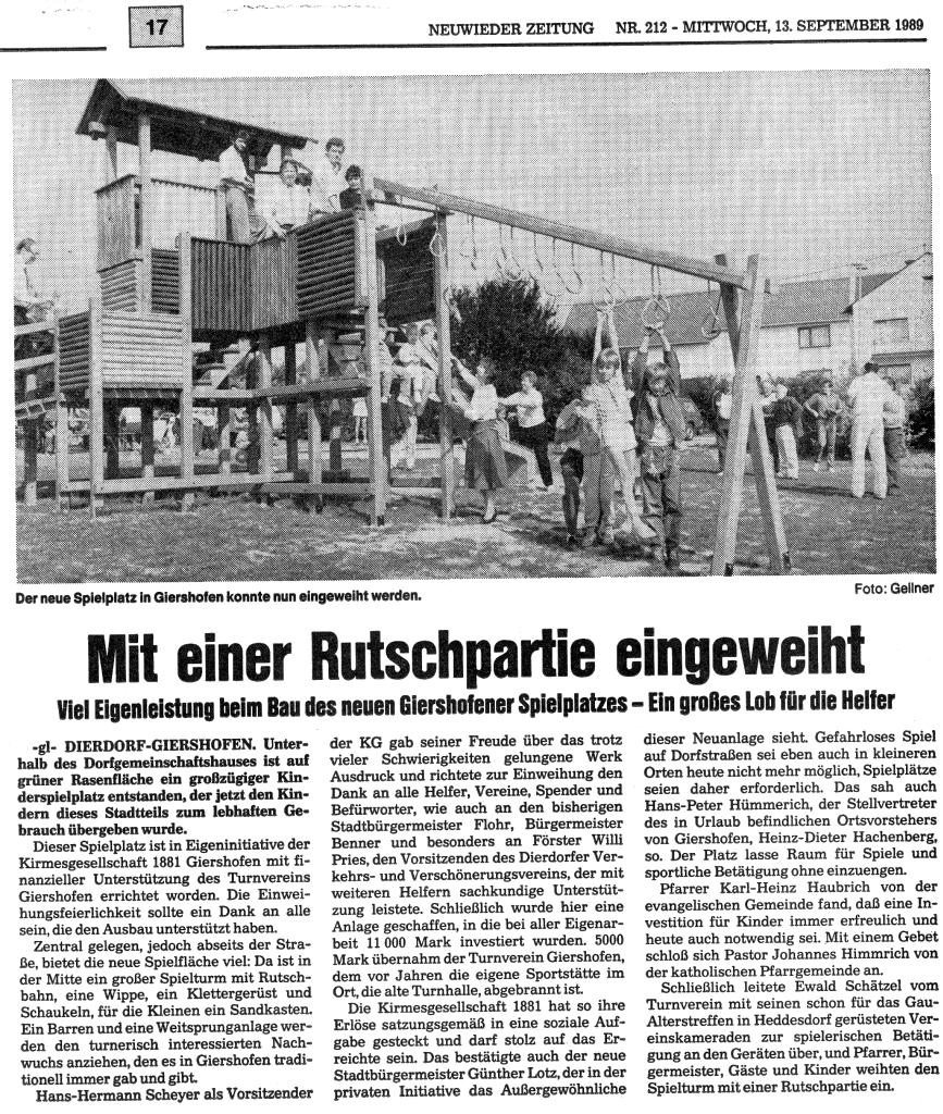Mit einer Rutschpartie eingeweiht – 13.9.1989 – Rhein-Zeitung, Ausgabe Neuwied